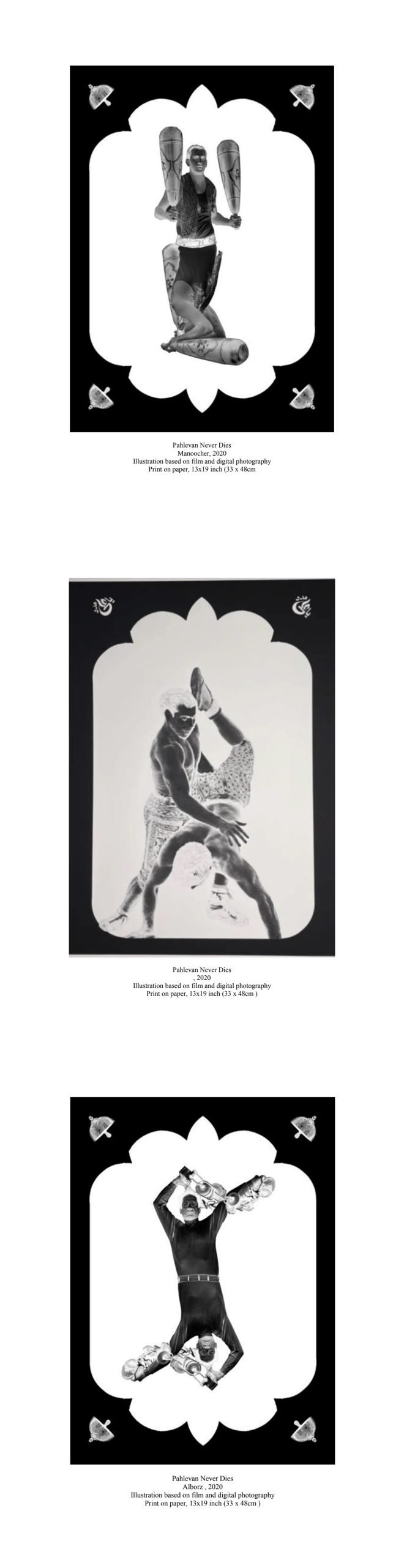 “Pahlevan Never Dies” (Pahlevanan Nemimirand) is a collection of 9 digital images using film and digital photography with a focus on forgotten myths of Pahlevani, which it’s a form of Iranian male heroism and athleticism.